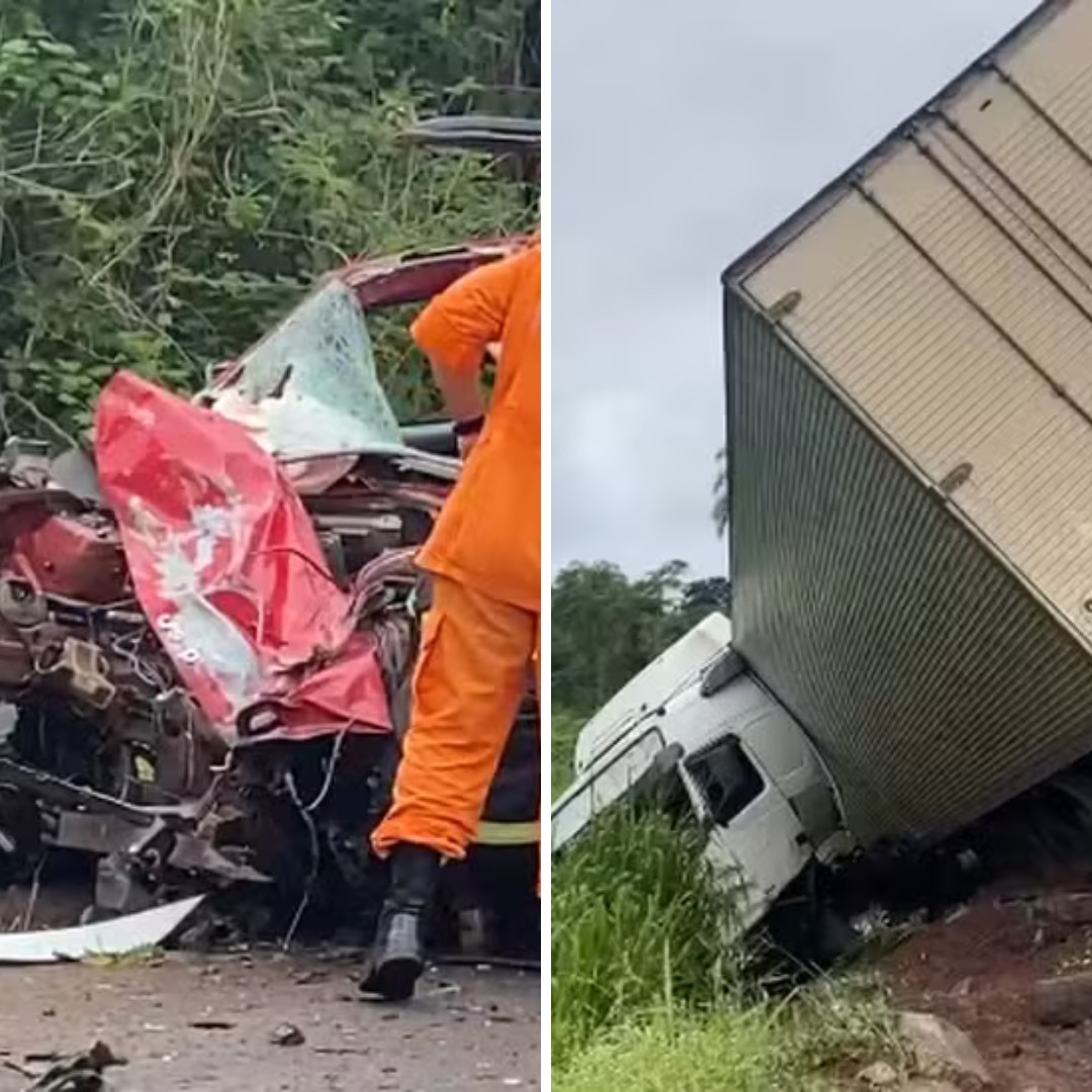Um acidente envolvendo um carro e um caminhão deixou três pessoas da mesma família mortas na rodovia BR-153, nesta quarta-feira (12). O motorista do caminhão, de 27 anos, contou que o carro tentou fazer uma ultrapassagem quando a batida aconteceu. Um policial penal, a mãe dele e a avó estavam dentro do veículo e morreram no local.