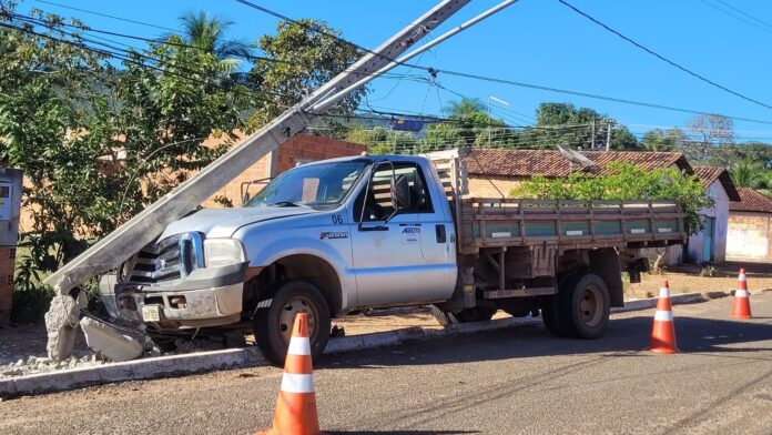 Caminhonete bate em poste e deixa moradores sem energia em Monte do Carmo