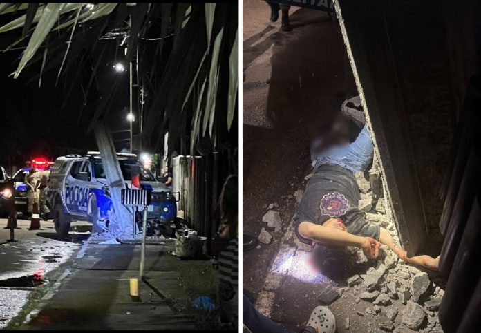 Em decorrência do impacto, a motocicleta ficou sob a viatura, que perdeu o controle e se chocou contra um poste. Gustavo foi prensado, e a estrutura de concreto quebrou, caindo parte sobre as pernas dele e esmagando seu braço direito.