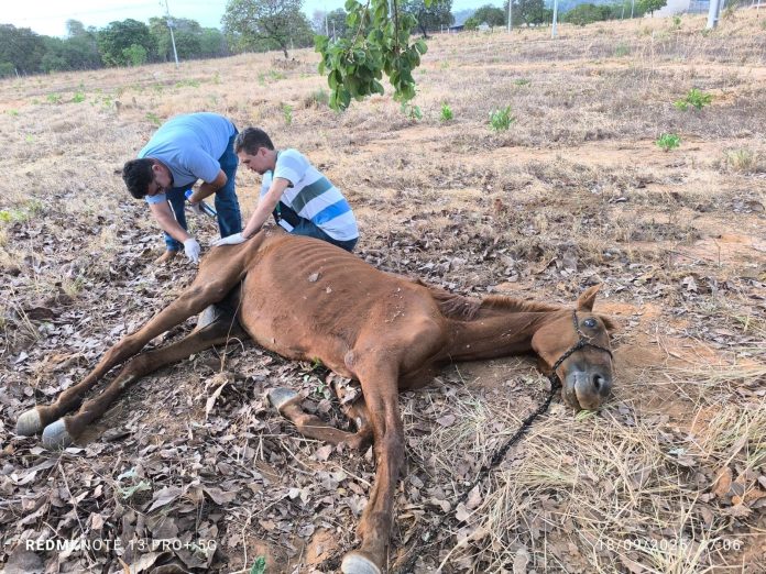 Cavalo abandonado é encontrado em estado crítico e resgatado na cidade Paraíso