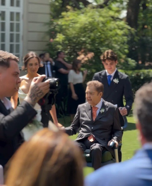 Fausto Silva leva filha ao altar de cadeira de rodas