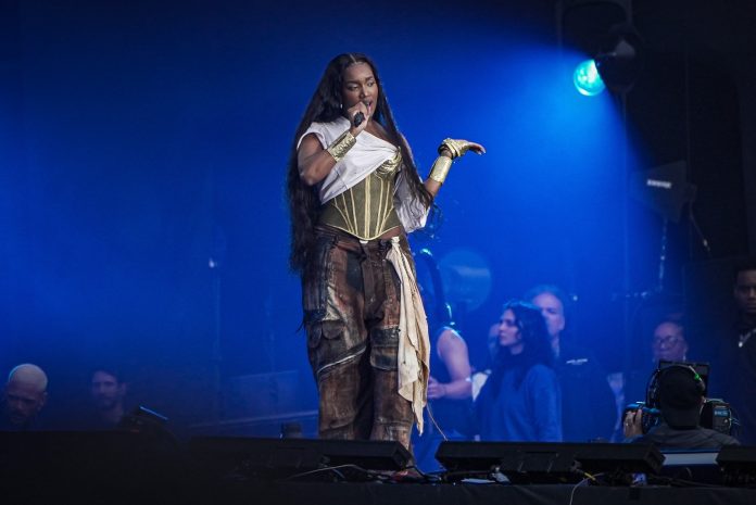 Como uma profetisa, Iza entoou versos de “O Que Se Cala”, de Elza Soares, e seguiu com arranjos dub de seus próprios hits, como “Dona de Mim” e “Fé”. Depois, surpreendeu ao tocar a nova música “Caos e Sal” pela primeira vez, um reggae com flow rápido da cantora.