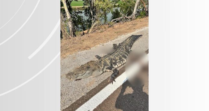 Um jacaré gigante morreu após ser atropelado por um carro na BR-242, em Formoso do Araguaia, região sudoeste do estado. Segundo a Polícia Rodoviária Federal (PRF), um homem e uma mulher de 62 e 61 anos, respectivamente, que estavam no veículo, tiveram apenas ferimentos leves.