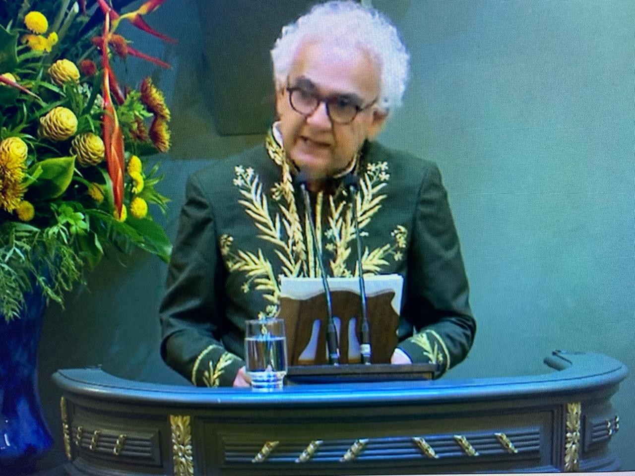 Escritor Milton Hatoum discursa em sua posse na ABL