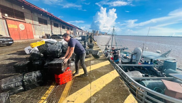 Os suspeitos foram abordados em alto mar durante um patrulhamento da PF e militares da Marinha, onde foram flagrados com cerca de cinco toneladas de produtos sem nota fiscal.