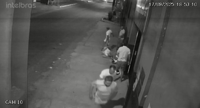 As imagens registradas por uma câmera de segurança mostram o momento em que atiradores em uma moto abriram fogo contra várias pessoas que estavam na porta da Unidade Prisional de Paraíso do Tocantins, região central do estado.