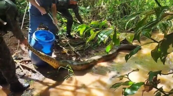 Sucuri de quase cinco metros é capturada após tentar caçar gato, diz PM