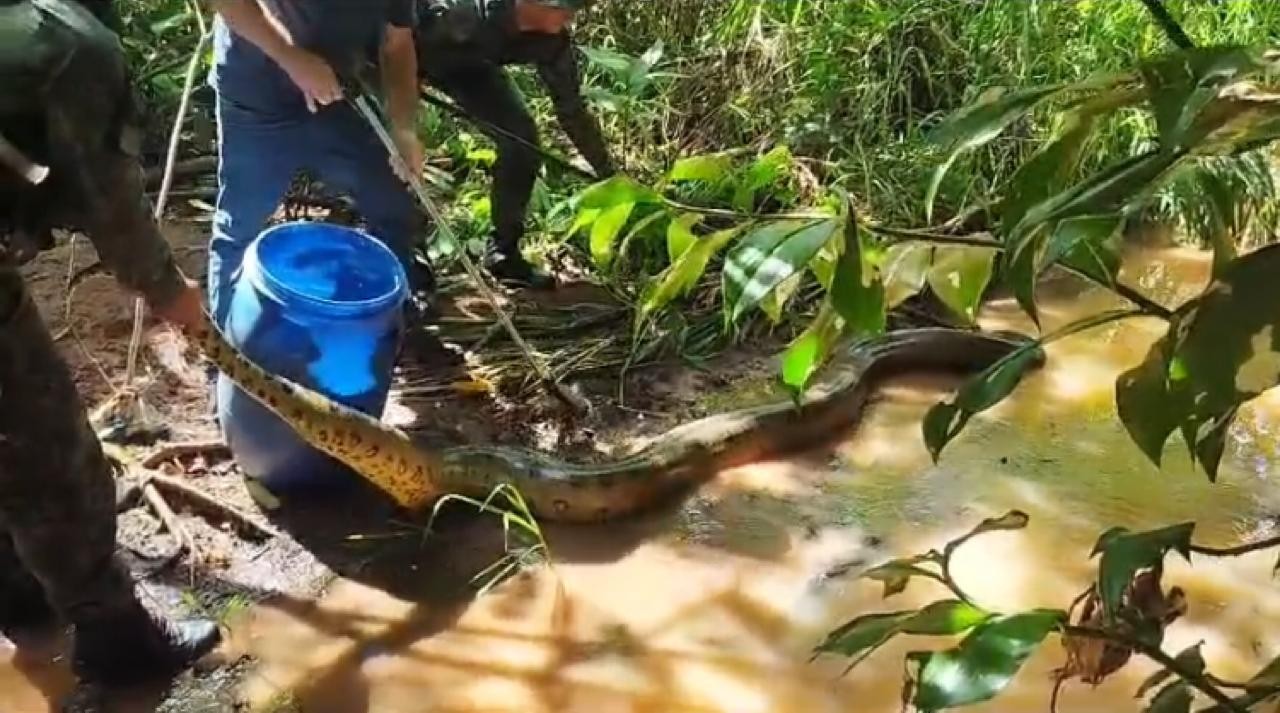 De acordo com a Polícia Militar (PM) o resgate foi feito à tarde, no bairro Santa Helena, por equipes do Batalhão Ambiental (BPMA). Populares chamaram a equipe e também ajudaram a capturar a sucuri.
