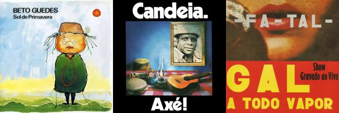 Capas dos álbuns ‘Sol de primavera’ (Beto Guedes, 1979), ‘Axé!’ (Candeia, 1978) e ‘Fa-Tal –Gal a todo vapor (Gal Costa, 1971)