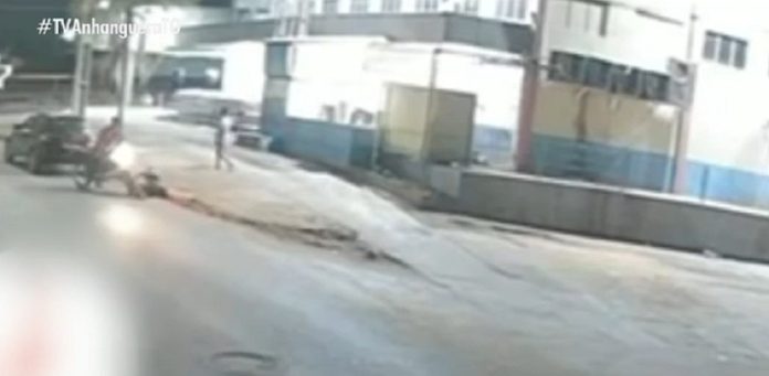 Nas imagens apuradas pela TV Anhanguera, a mulher aparece conversando com dois homens, sendo que um deles estava em uma motocicleta. De repente, um deles avançou contra a vítima e a golpeou. O suspeito subiu na moto e fugiu.
